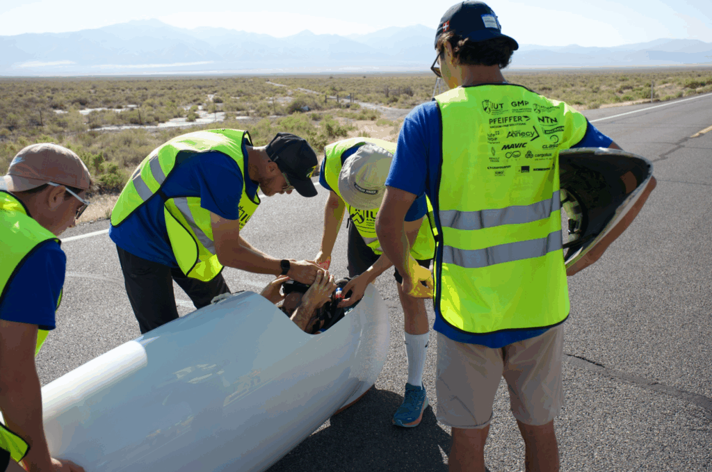First qualifying runs are finished. We are happy with the way we were able to run the first session and only had a few minor incidents. At some point a cow decided it also wanted to be in the Worlds fastest list, however we are Human Powered and it was going down the 305 in the wrong direction anyway. We also had some weirdo try to run over one of our flaggers. Fortunately we had our TCS Josh who was able to assist.